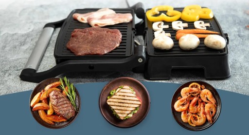Płyty górną i dolną można ułożyć płasko 180°, aby zwiększyć powierzchnię opiekania, wygoda dla całej rodziny.