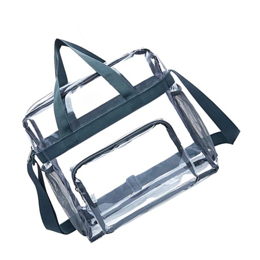 Przezroczysty projekt: Torba podróżna z PVC jest zaprojektowana w kolorze przezroczystym, możesz w pełni rozpoznać wszystko w środku.