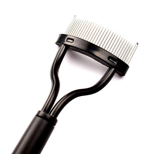 Ergonomicznie ukształtowany metalowy grzebień do rzęs , konstrukcja umożliwia po prostu szczotkowanie do góry, zamiast skręcania dłoni w celu szczotkowania