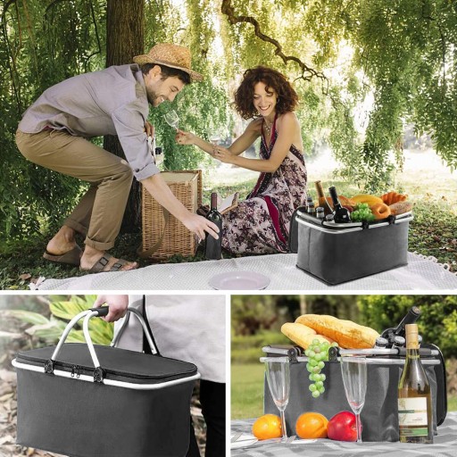 Wnętrze kosza pokryte jest materiałem izolacyjnym, który w upalne dni pozwoli zachować świeżość oraz utrzymać odpowiednią temperaturę posiłków i napojów nawet przez kilka godzin. Ciężkie lodówki turystyczne są niewygodne w przenoszeniu, dlatego kosz wykonany jest z lekkiego materiału, który zwiększa komfort podczas transportu. Wygodne rączki pomagają w transporcie produktów na plażę, piknik, rodzinne wycieczki i podczas zakupów.