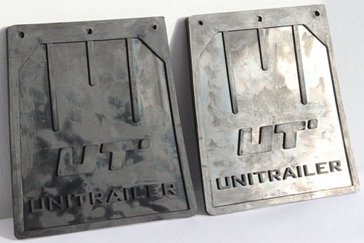 Dwa małe chlapacze gumowe marki Unitrailer, przeznaczone do różnego rodzaju przyczep. Idealne dla błotników o rozmiarze 13", 14" i 15". Zestaw zawiera dwa chlapacze.