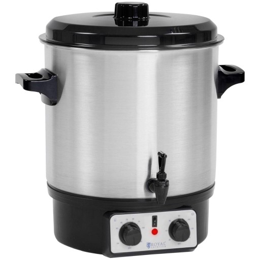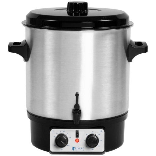 Podgrzewacz do wina to wielofunkcyjne urządzenie marki Royal Catering do automatycznego gotowania, utrzymywania ciepła i dozowania (kranik) o pojemności 27l. Model RCMW-27S posiada funkcję timer do 120 minut. Dzięki możliwości regulacji temperatury w zakresie od 30 do 100°C i specjalnej wkładce sprzęt sprawdzi się w wysokotemperaturowej pasteryzacji słoików. System ochrony przed przegrzaniem i pracą na sucho zapewniają bezpieczeństwo eksploatacji. Za sprawą optymalnych parametrów podgrzewacz zda egzamin zarówno w komercyjnym, jak i domowym użytku. Elegancka stal nierdzewna przyciąga wzrok, dlatego nasz produkt nadaje się na imprezy, bankiety i konferencje.