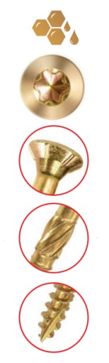 Zaprojektowany we współpracy z wykonawcami nowy szpic wkrętów ciesielskich, ułatwia montaż oraz charakteryzuje się wysokimi parametrami wytrzymałościowymi takimi jak: wytrzymałość na wyrywanie, ścinanie itp. UP TO 8,8KN