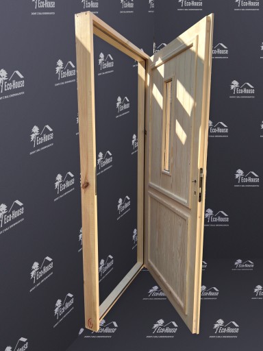 Drzwi są wykonane z drewna sosnowego/świerkowego suszonego komorowo, zaimpregnowane środkiem Fobos M4.