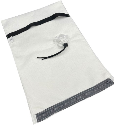 Włóknina filtracyjna, z której został wykonany to gruba olejoodporna włóknina filtracyjna o dodatkowym wzmocnieniu w postaci wplecionego zbrojenia dodatkowym włóknem, które znacząco podnosi wytrzymałość i niweluje możliwość rozerwania. Wnętrze worka zostało pokryte powłoką antyadhezyjną, zmniejszająca przyczepność zanieczyszczeń do materiału.