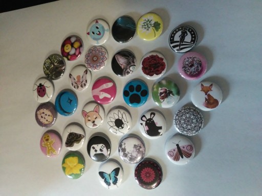 Kolorowa przypinka w rozmiarze 25mm, zapinana na agrafkę z Twoim wzorem, napisem, zdjęciem, logo!