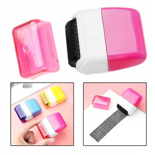 Znaczek rolkowy zabezpieczający przed kradzieżą tożsamości: Znaczek rolkowy ochrony prywatności, wyciągnij dolną pokrywę, użyj rolki, aby zakryć dane osobowe