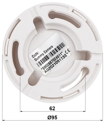 Atrapa wewnętrzna kamery kulistej Atrapa kamery do złudzenia przypomina kamery z serii DP o tym samym numerze modelu i kolorze