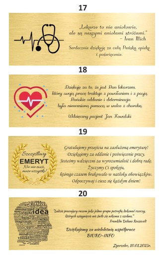 (można skorzystać z naszych propozycji lub podać swój własny tekst i grafikę, jeżeli chcą Państwo użyć swojej grafiki należy ją najpierw do nas wysłać w wiadomości, a my sprawdzimy czy się nadaję do umieszczenia na tabliczce)