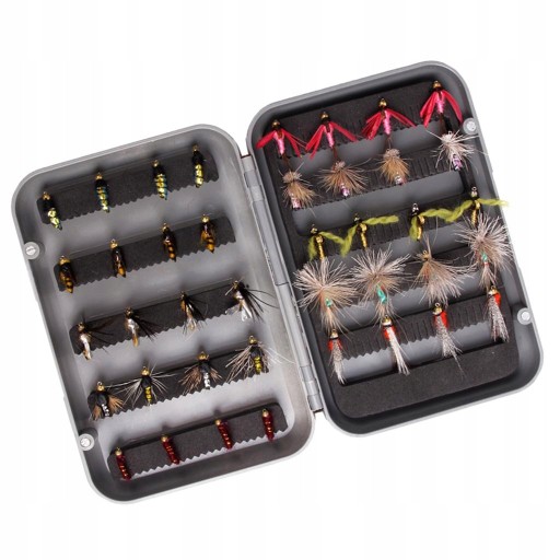 40 Sztuk Zestaw Much Wędkarskich Pstrąg Muchy łosoś Haczyk Różne Owady Przynęta W / Pudełko