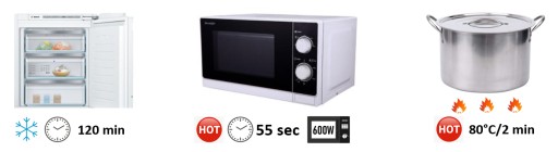 Umieść kompres w wodzie o temperaturze do 80°C na około 2 minuty lub w kuchence mikrofalowej na czas max. 55 sekund przy mocy 600W.