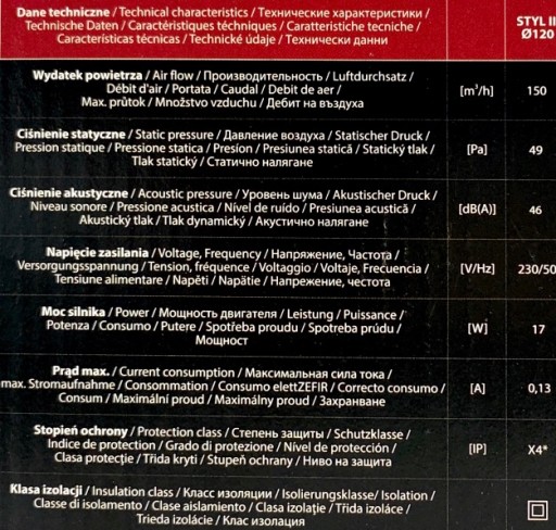 - wysoki stopień ochrony IP x4 zapewnia idealne rozwiązanie dla wentylacji łazienki