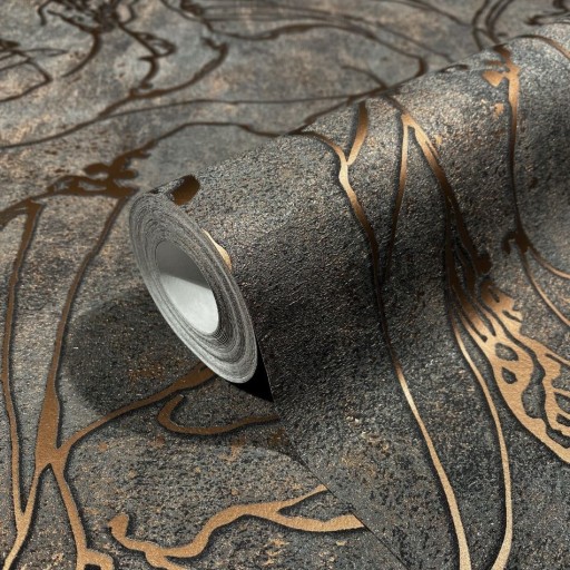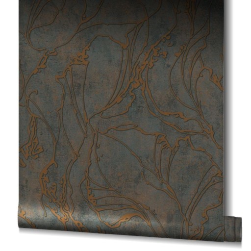 tło tapety ma fakturą betonu z miedzianymi "przetarciami",
