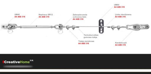 - Napinacz linki, wsporniki, żabki oraz inne elementy wykonane ze stali nierdzewnej.