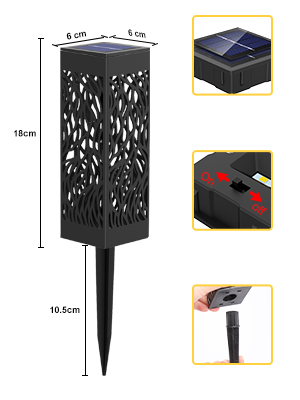 Pełna energia słonecznego światła ogrodowego pochodzi ze słońca, automatycznie pochłania energię słoneczną, 300 mAh bateria litowa, która jest w pełni naładowana w 6-8 godzin, czas pracy wynosi około 6-10 godzin, zaoszczędzić dużo energii elektrycznej.