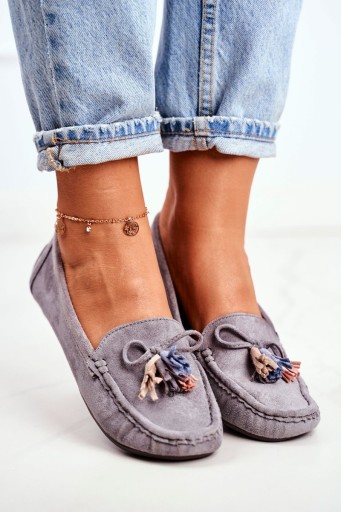 Mokasyny Damskie Zamszowe 20PB35-2003 Szare Donna Mia - rozmiar 38