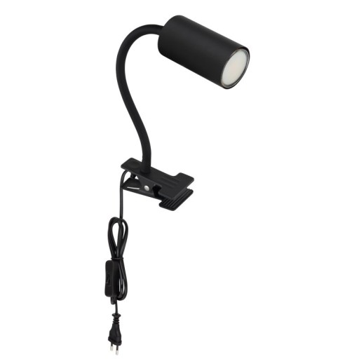 Lampka klips, metal czarny, tworzywo czarne, Kabel PCV czarny, z wyłacznikiem na przyłączu, regulacja flexo, Szer*Gł*Wys: 290x100x415mm, przyłącz 1500mm, nie zaw. 1x GU10 25W 230V
