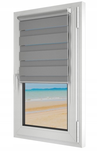 Roleta Mini Dzień Noc 4Dekor to dwufunkcyjna roleta z płynną regulacją poziomu zaciemnienia. System ułożonych naprzemiennie transparentnych pasów siateczki i pasów nieprześwitującej tkaniny pozwala całkowicie zasłonić okno lub wprowadzić do wnętrza subtelne światło. Mechanizm rolety umożliwia dowolną regulację dopływu światła do pomieszczenia. Roletę można także zupełnie podnieść, dzięki czemu pomieszczenie będzie bardzo jasne. Montaż rolety jest łatwy i bezinwazyjny – nie wymaga wiercenia ani użycia narzędzi.