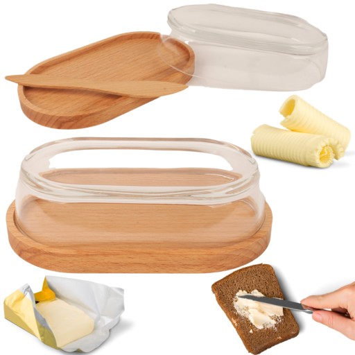 Solidnie wykonana z wysokiej jakości drewna bukowego oraz szkła maselnica drewniana o owalnym kształcie. Minimalistyczny i elegancki design sprawia, że świetnie prezentuje się w każdym stylu kuchni. Jeśli pragniesz zachować świeżość i idealną strukturę masła, aby nie męczyć się ze zbyt twardą kostką z lodówki, nasza maselnica to must-have w każdej kuchni.