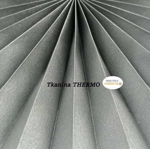 Plisy THERMO o skuteczna ochrona pomieszczeń przed intensywnym światłem słonecznym. Tkanina THERMO charakteryzuje się gęstym splotem i tym, że posiada specjalną powłokę zewnętrzną, która izoluje od promieni słonecznych, odbija je doskonale i zapobiega nagrzewaniu pomieszczenia! To wyjątkowy model tkaniny!