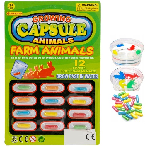 Magiczne kapsułki są to podłużne tabletki z których po umieszczeniu ich w wodzie wykluwają się rożnego rodzaju zwierzęta hodowlane w postaci mięciutkich gąbeczek.