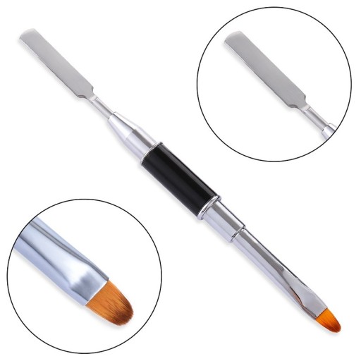 Dwustronny pędzel do akrylożelu, poligelu ze szpatułką