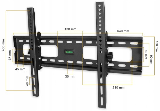 Prezentowany uchwyt jest niesamowicie mocny i uniwersalny - posiada on płynnie regulowany rozstaw otworów montażowych od 75x75mm do aż 600x400mm (pierwszą wartością jest odległość między otworami poziomymi, drugą wartością jest odległość między otworami pionowymi). Jeżeli Twój telewizor posiada otwory montażowe mieszczące się w tym przedziale i nie przekracza wagi 55 kg, to prezentowany wieszak na pewno będzie pasował.