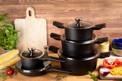 Garnki zostały wykonane z wysokiej jakości odlewu aluminium. Mocne, nienagrzewające się uchwyty, które można odpinać.