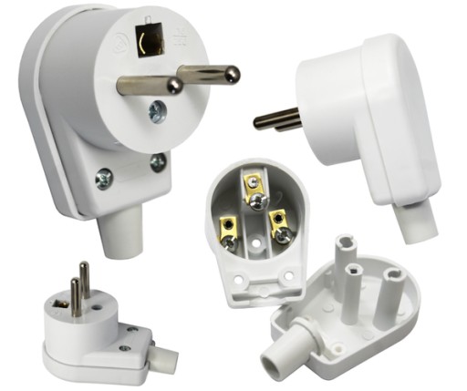 VIPLAST УГЛОВАЯ ВИЛКА С ЗАЗЕМЛЕНИЕМ БЕЛАЯ 230В