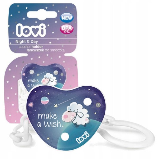 Wyposażony w praktyczny klips, który umożliwia stabilne i silne przymocowanie do ubranka dziecka, chroniąc smoczek przed zabrudzeniem lub zgubieniem.