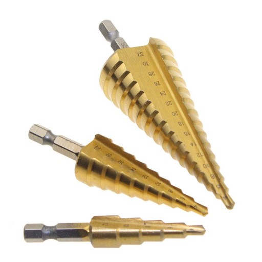 Wiertła stożkowe zostały wykonane z wysokogatunkowej stali szybkotnącej HSS i pokryte powłoką z tytanu. Przeznaczone do blach stalowych cienkościennych, metali, wywiercą cienkie blachy bez uprzedniego nawiercania i zadziorów. Znajdą zastosowanie w ślusarstwie, blacharstwie, branży introligatorskiej itp. Wiertła są pokryte powłoką z tytanu, co kilkukrotnie przedłuża ich żywotność w porównaniu ze zwykłymi wiertłami HSS.