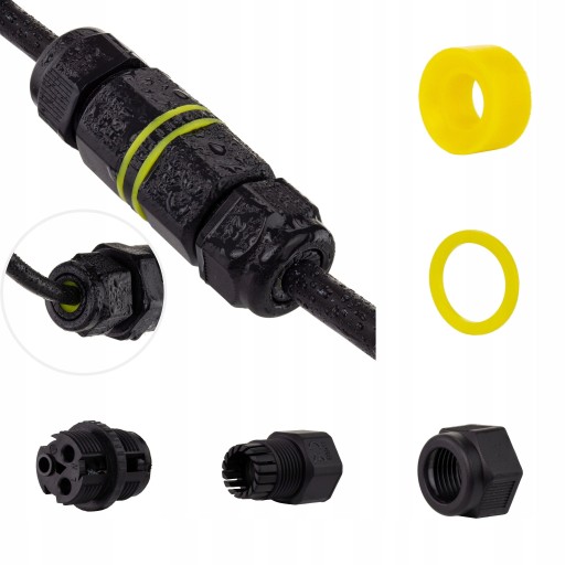 Solidne, skręcane złącze kablowe gwarantujące trwałe i szczelne połączenie. Idealne rozwiązanie, aby szybko połączyć i schować przewody, znakomicie sprawdza się jako element do przedłużenia przewodu lub zestaw naprawczy.