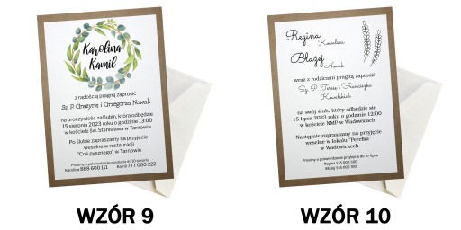 - Wybranego wzoru (w przypadku nie podania wzoru zaproszenie zostanie wykonane takie jak na pierwszym zdjęciu aukcji).
