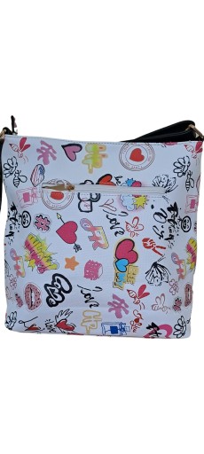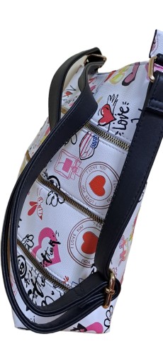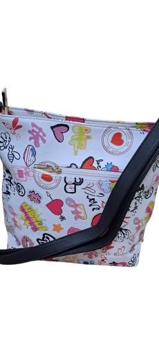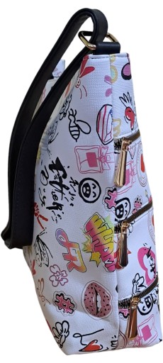 Z tyłu torebki kieszonka na zamek, z przodu torebki 3 mini kieszonki również na zamek.
