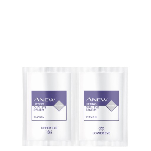 Sięgnij po nowy, ulepszony podwójny program liftingujący okolice oczu z Protinolem™ - opatentowanym przez Avon składnikiem, który zwiększa skuteczność i szybkość działania naszego bestsellerowego kosmetyku. Żel na powieki zapewni im efekt liftingu i widocznie je ujędrni, a krem zredukuje widoczność obrzęków pod oczami i pomoże wygładzić zmarszczki. Podwójny program liftingujący okolice oczu wyraźnie uniesie skórę i przywróci jej sprężystość, a efekty zobaczysz już po 2 dniach*!