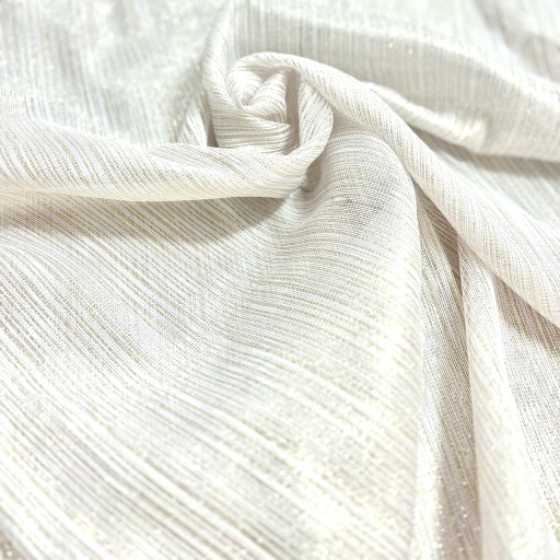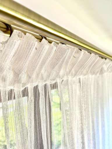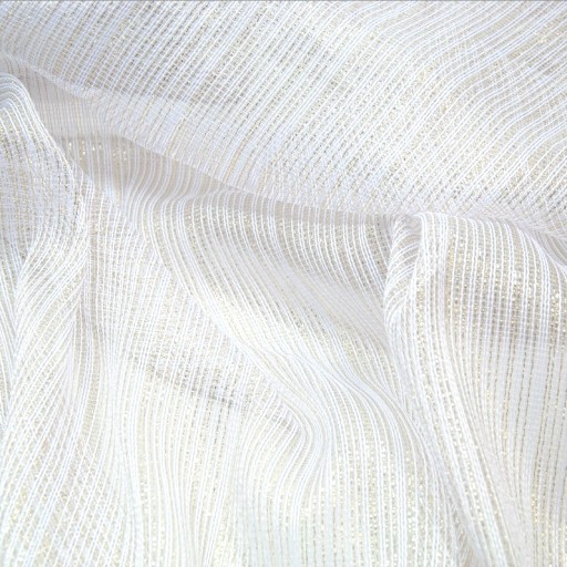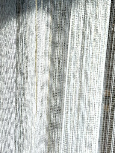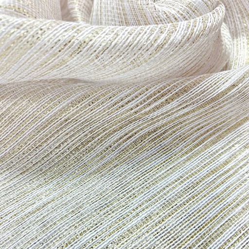Bardzo elegancka , dosyć przezroczysta tkanina przetykana złotą nitką, miękka, bardzo dobrze się układa, dół wykończony ołowianką Doskonale współgra zarówno z nowoczesnym jak i klasycznym charakterem wnętrza. Ażurowa struktura nie zaciemnia wnętrza i zapewnia pomieszczeniu wiele naturalnego światła.