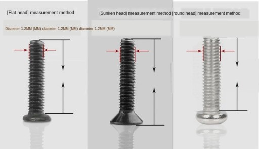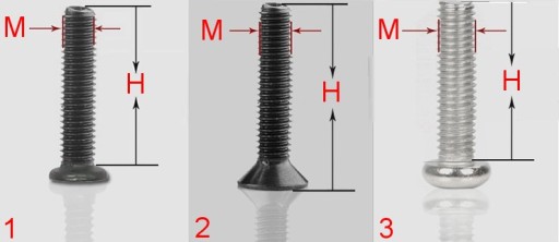 Średnicę gwintu śrub czy wkrętów zawsze mierzymy "po gwincie" czyli po zewnętrznej części gwintu. Najczęściej spotykanym błędem jest dokonywanie pomiaru średnicy samego trzpienia czyli pomiędzy gwintem. W zależności od rodzaju śrubki(1,2,3), jej długość(H) mierzymy jak na załączonym obrazku.