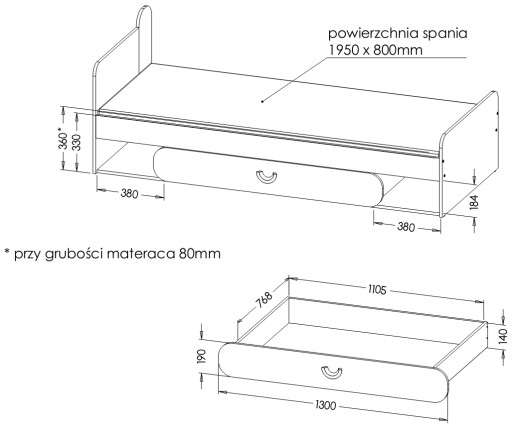 - Carini_Ca11 – Łóżko – 80 x 195 84 x 198 x 70