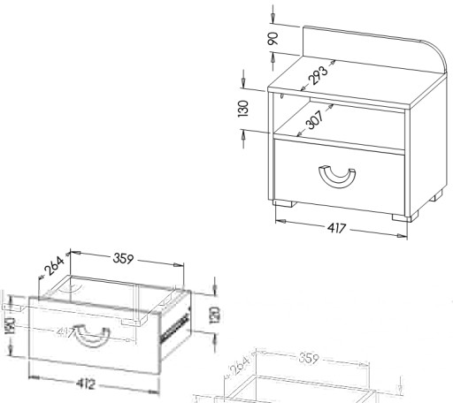 - W szufladach zastosowano wygodne oraz ciche prowadnice kulkowe,