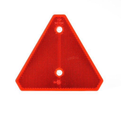 Trójkąt odblaskowy z otworami montażowymi fi5, z homologacją E20 na drogi całej Europy. Stosowany w przyczepach towarowych, lawetach, dłużycach, przyczepach rolniczych itd...