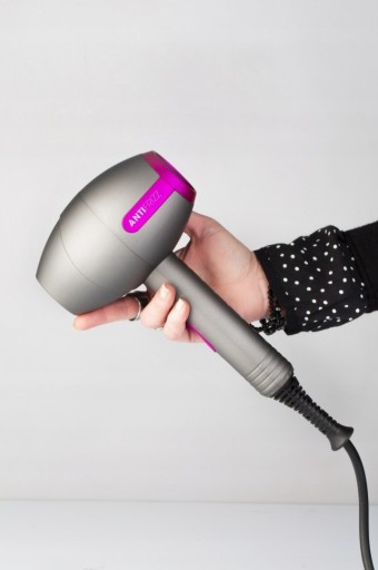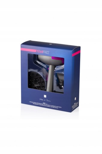 Anti-Frizz to pierwsza profesjonalna suszarka do włosów kręconych lub puszących się. Zintegrowane urządzenie jonizujące zapobiegające puszeniu się włosów