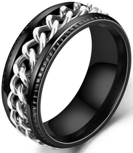 Pierścień Łańcuch Rotacyjny Czarny Srebrny Sygnet