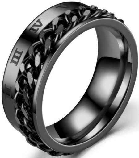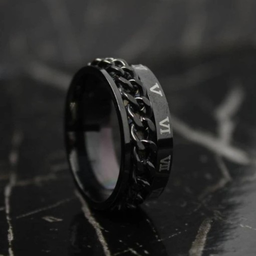 Czarny Pierścień z Rotacyjnym Łańcuszkiem
