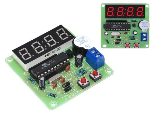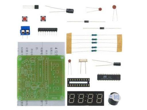 Zestawy DIY (do samodzielnego montażu), zawierający wszystkie elementy wchodzące w skład zegara elektronicznego z budzikiem.