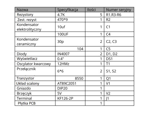 Zestaw do samodzielnego montażu umożliwiający zbudowanie elektronicznego czterobitowego zegara opartego na układzie AT89C2051.