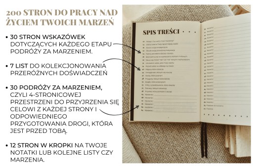 Korzystając z opracowanej przeze mnie metody „Podróży za Marzeniem” uświadomisz sobie, że zadbanie o odpowiednie przygotowanie, dobry plan oraz systematyczność to wszystko czego potrzebujesz w drodze po swoje marzenia.