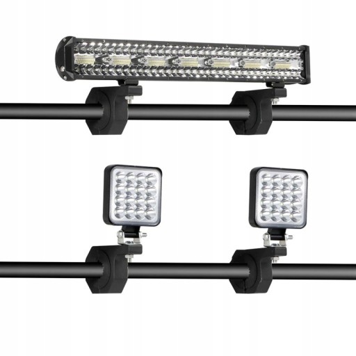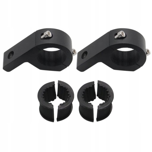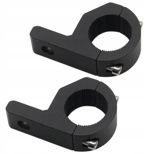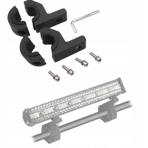 Komplet 2 sztuk metalowych uchwytów do montażu halogenów i lamp w pojazdach lub motocyklach. Pozwalają one na bezinwazyjny montaż na rurkach o średnicy od 22mm do 32mm. Nie wymagają wiercenia ani klejenia. Wyposażone są w gumowe wkładki, które skutecznie eliminują drgania podczas poruszania się pojazdu.