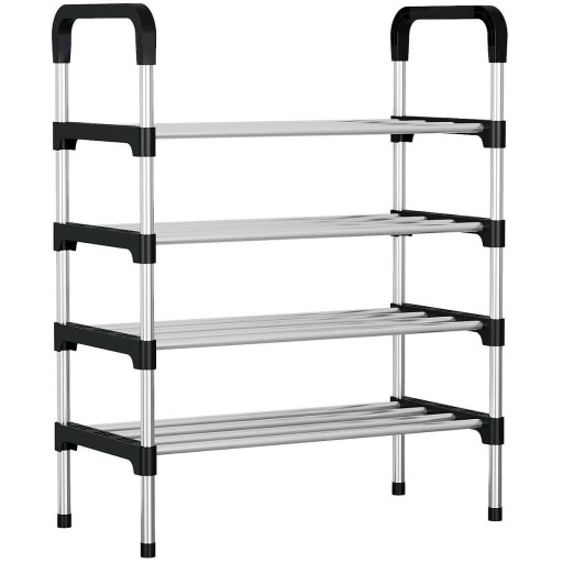 Półka dzięki swojej konstrukcji jest łatwa w montażu i nie potrzeba narzędzi do zmontowania jej. Prosty design wpasuje się w każde wnętrze. Półka jest lekka i stabilna. Wyposażona w 4 poziomy możliwość pominięcia rurek w jednym poziomie przez co zyskujemy miejsce na wyższe buty.