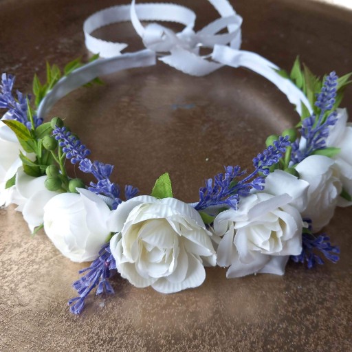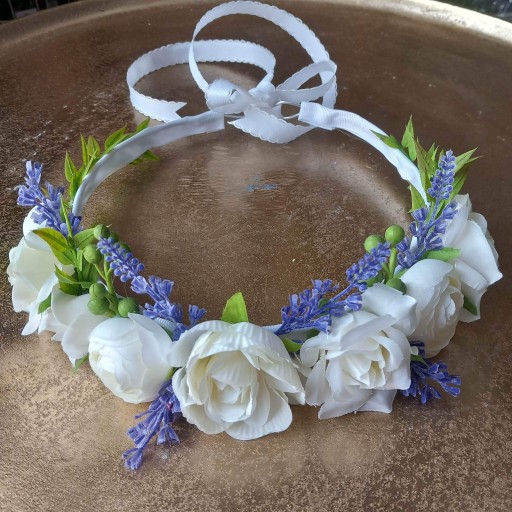 - Delikatny wianek ze sztucznych kwiatów,