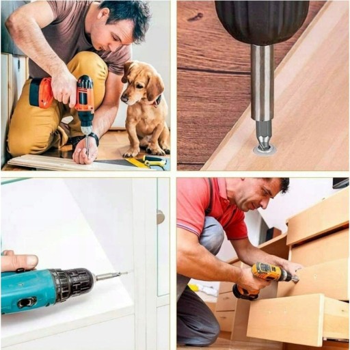 Przedłużający uchwyt do bitów (6,35 mm) i adapter podstawy (4 mm) zestawu do wyciągania pasują do dowolnej marki wiertarki / wkrętarki; Pole magnetyczne wewnątrz uchwytu i adaptera zapobiega spadaniu wkładek.